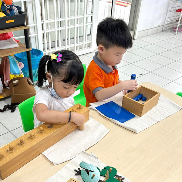 There are eight key stages of development in our curriculum: social development, language and literacy, mathematical development, knowledge and understanding, physical development, and creative development. Moreover, children are able to develop their kinaesthetic abilities through specially designed Montessori materials.